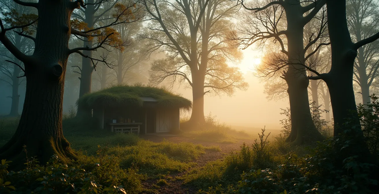 L’affût n’est pas une forteresse, mais une extension de la forêt. Le but n’est pas de bâtir une structure, mais de se fondre dans le décor existant. L’art de l’affût naturel réside dans l’utilisation exclusive des éléments qui vous entourent : branches mortes, fougères, touffes d’herbe. Cela garantit un camouflage parfait, car vous utilisez les couleurs, les textures et les odeurs mêmes du lieu. La première règle est le choix de l’emplacement. Privilégiez toujours un endroit déjà dense : le pied d’un grand arbre, un buisson épais, un amas de rochers. L’ombre est votre meilleure alliée, car elle gomme les contours et atténue les contrastes. L’objectif est de casser la forme humaine, si reconnaissable pour un animal.
