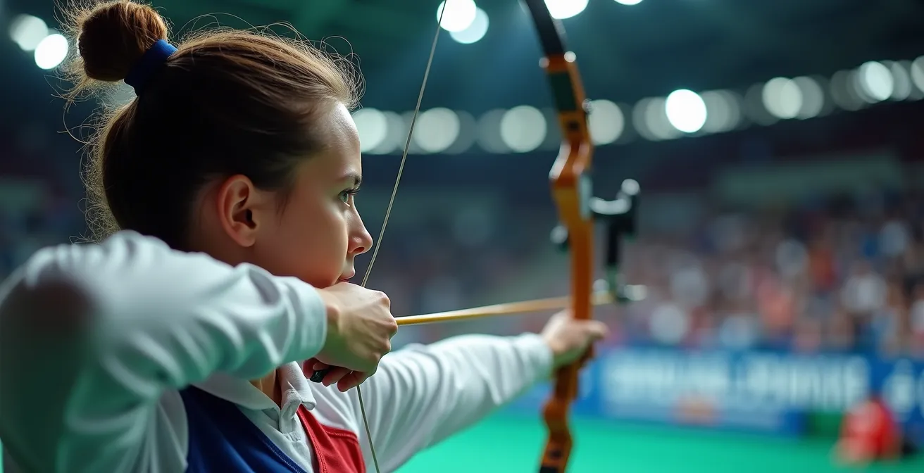 Vous voilà dans l’arène. Le silence se fait, les regards convergent vers le pas de tir. C’est ici que la préparation mentale prend tout son sens. Comme le souligne un expert en préparation mentale de l’Académie de la Haute Performance, « le stress nuit considérablement à la performance. Le moindre tremblement, la plus petite distraction peut compromettre l’exactitude du tir ». Le défi n’est plus seulement technique, il est psychologique. Beaucoup d’archers excellents à l’entraînement voient leurs moyens s’effondrer sous la pression, victimes de croyances limitantes comme « je ne suis pas fait pour gagner ».